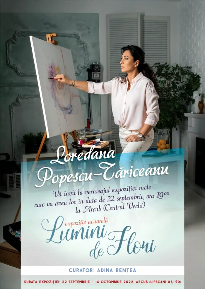 În perioada 22 septembrie – 16 octombrie 2022, ARCUB – Centrul Cultural al Municipiului Bucureşti găzduieşte expoziţia de pictură Lumini de flori, semnată Loredana Popescu Tăriceanu.