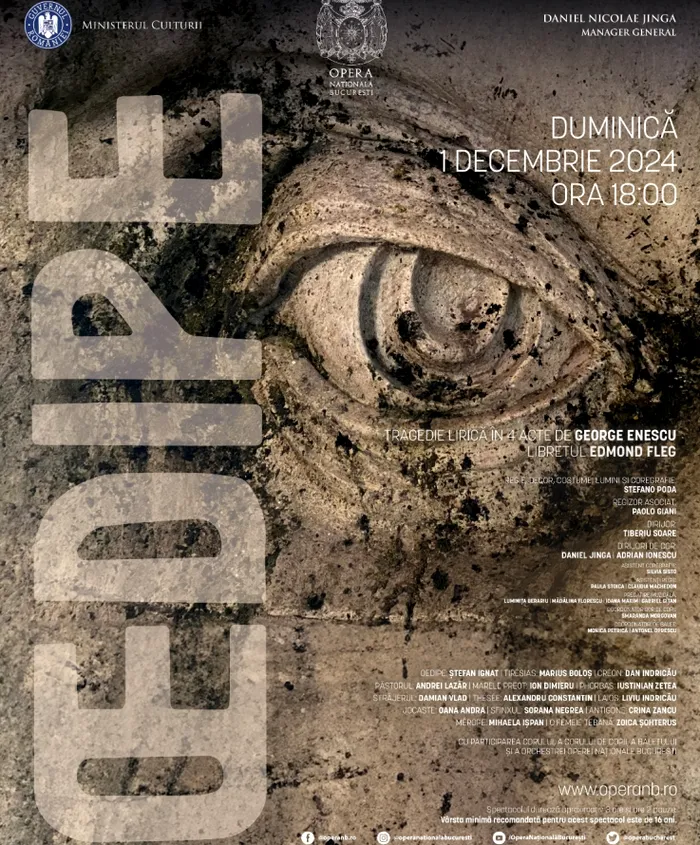 Descoperiți magia unei opere care a cucerit lumea! Lăsați-vă purtați de geniul lui George Enescu și de viziunea spectaculoasă a lui Stefano Poda în cele două reprezentații de pe 30 noiembrie și 1 decembrie, de la ora 18:00, la Opera Națională București!