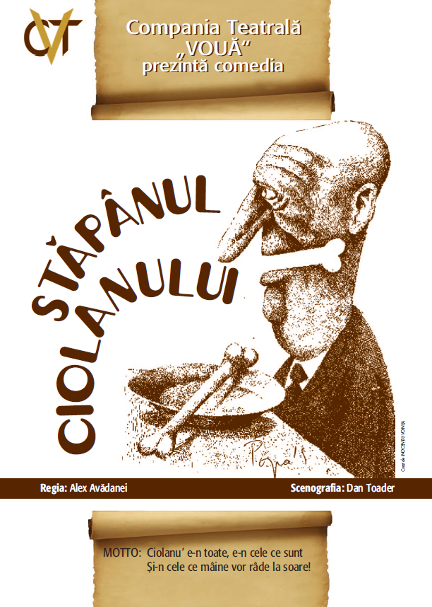 Gândul.ro încearcă să vă ajute, în acest sens, oferindu-vă prilejul de a viziona online, în premieră absolută – – sâmbătă, 16 mai 2020, de la ora 20.30, pe canalul de YouTube Gândul.ro – piesa de teatru ”Stăpânul Ciolanului”, o comedie spumoasă propusă de ”Compania Teatrală Vouă” sub un motto sugestiv: ”Ciolanu’ e-n toate, e-n cele ce sunt/Și-n cele ce mâine vor râde la soare!”