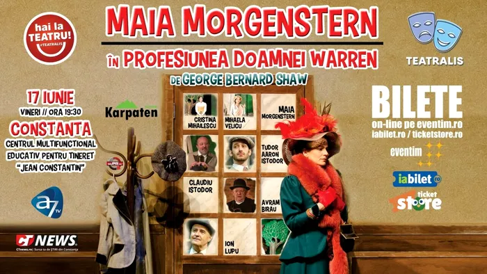 Spectacolul ”Profesiunea doamnei Warren” va avea loc pe data de 17 iunie, de l ora 19:30, iar spectatorii vor fi privilegiați. Îi vor vedea jucând împreună pe marea actriță Maia Morgenstern, regizorul Claudiu Istodor și fiul lor, Tudor Istodor.