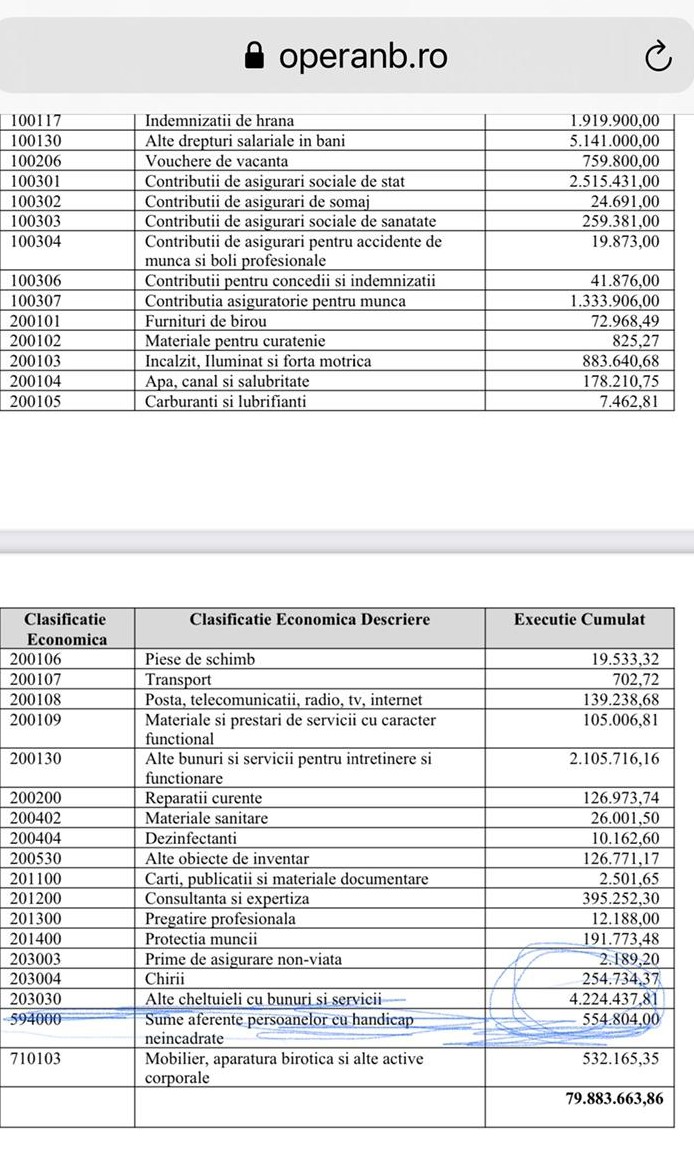 Informații publicate chiar pe site-ul Operei Naționale București oferă un tablou sumbru al cheltuielilor nejustificate.