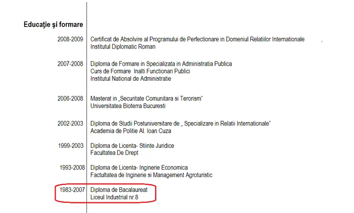 Probleme de moralitate și chiar legalitate apar și în CV-ul public al lui Valentin Cristescu. Acesta a început Liceul Industrial nr. 8 în 1983 și a reușit să obțină diploma de Bacalaureat în… 2007.