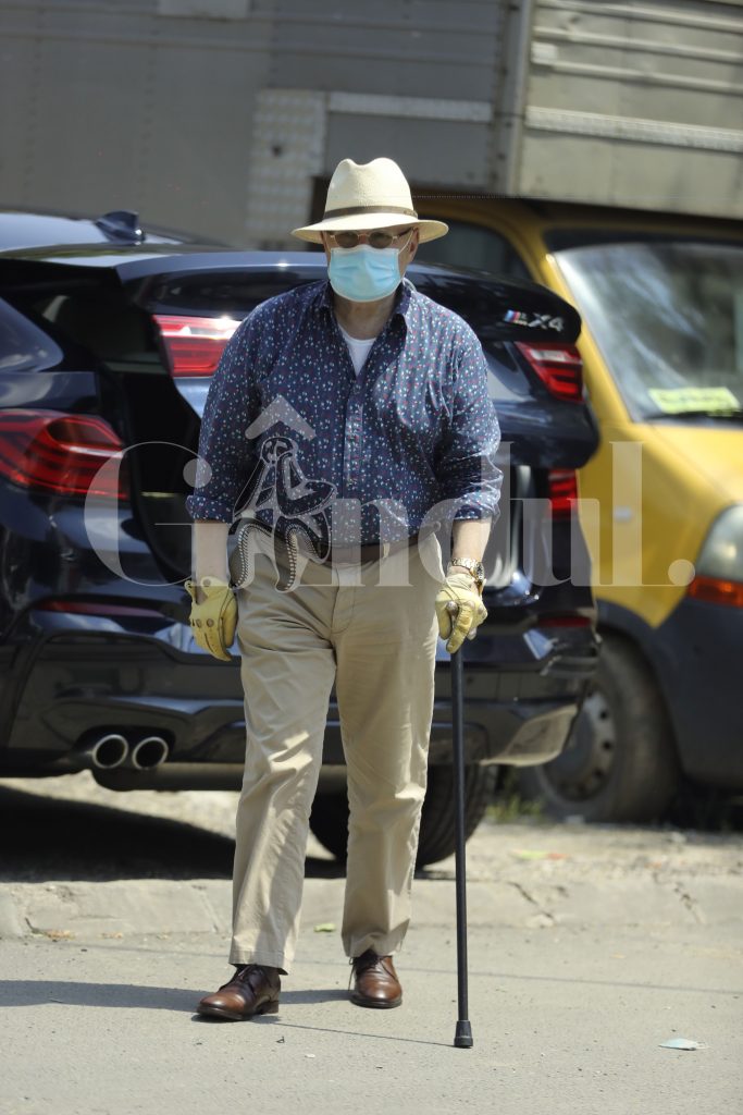 Mihai Lucan, ajutându-se de un baston și protejându-se împotriva noului coronavirus