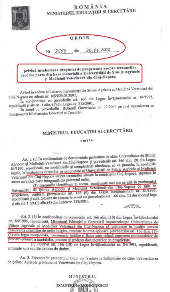 Mai mult, USAMV Cluj a reclamat că este proprietarul de drept al terenului și a cerut ”constatarea nulităţii absolute a contractului de vânzare-cumpărare dintre Agroindustriala și Polus (încheiat pe 16 iunie 1999)”.