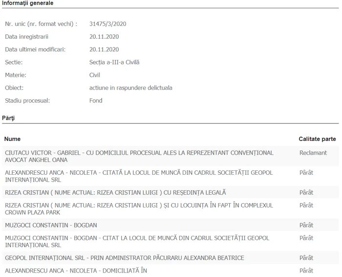 Jurnalistul Victor Ciutacu a trecut ”la fapte”, cum se spune, acționându-i în instanță pe cei doi – pe data de 20 noiembrie -, dar pe lista ”pârâților” de mai află și Muzgoci Constantin-Bogdan & Geopol Internațional SRL.