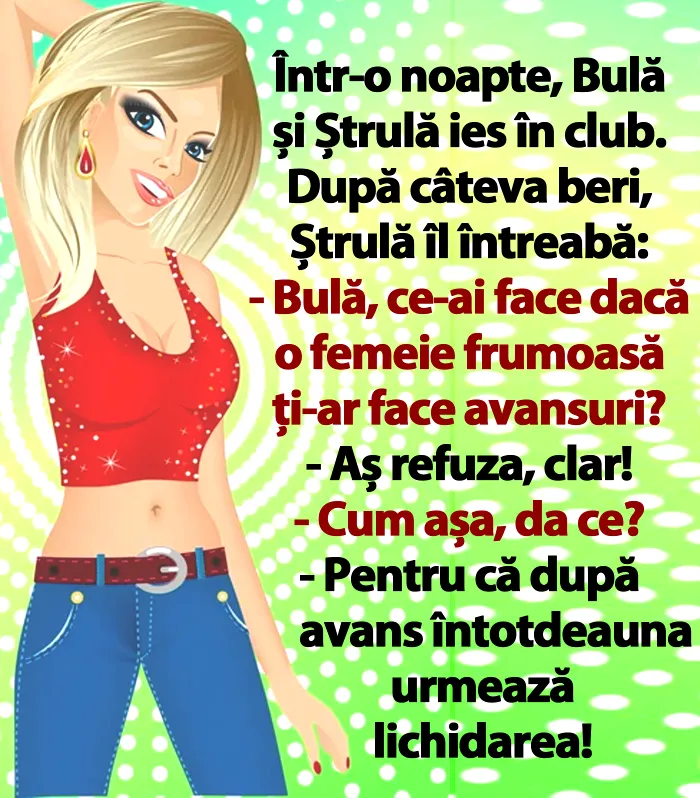 – Bulă, ce-ai face dacă o femeie frumoasă ți-ar face avansuri?