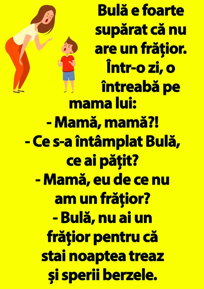 – Bulă, nu ai un frățior pentru că stai noaptea treaz și sperii berzele.