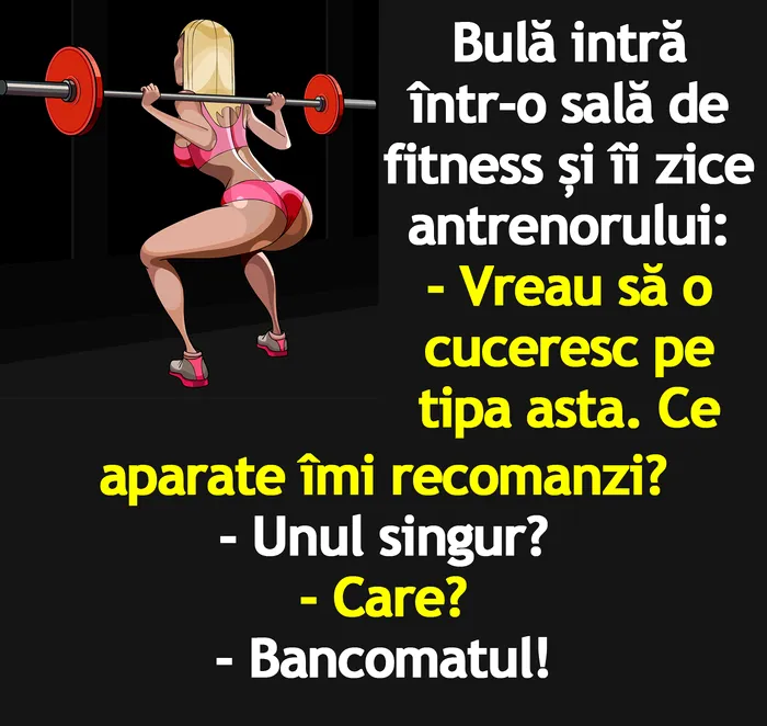 Bulă intră într-o sală de fitness și îi zice antrenorului: