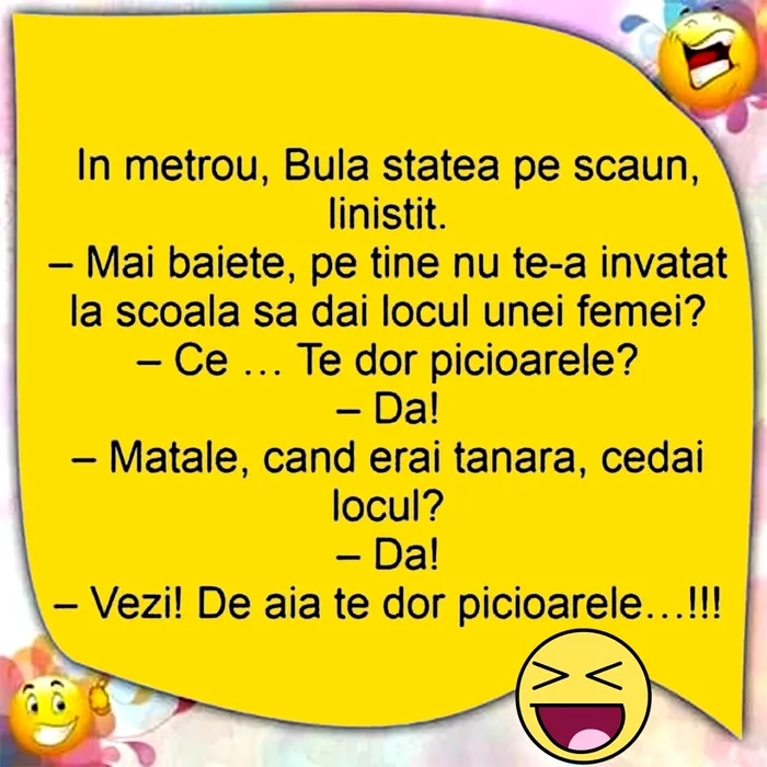 – Mai băiete, pe ține nu te-a învățat la școală să dai locul unei femei?