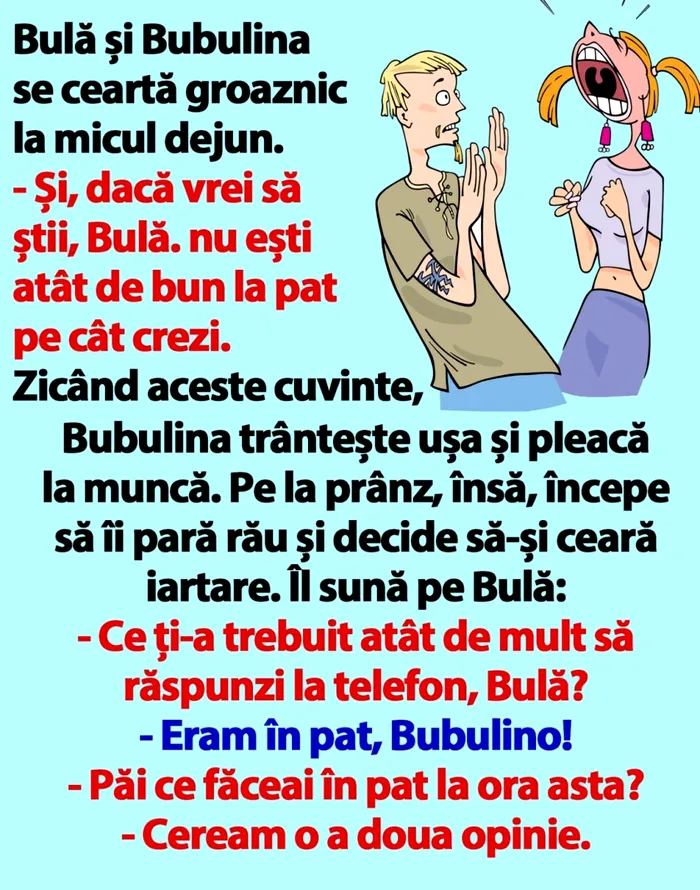 Bulă și Bubulina se ceartă groaznic la micul dejun.