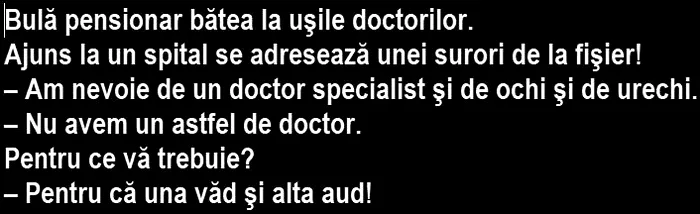 – Am nevoie de un doctor specialist şi de ochi şi de urechi.