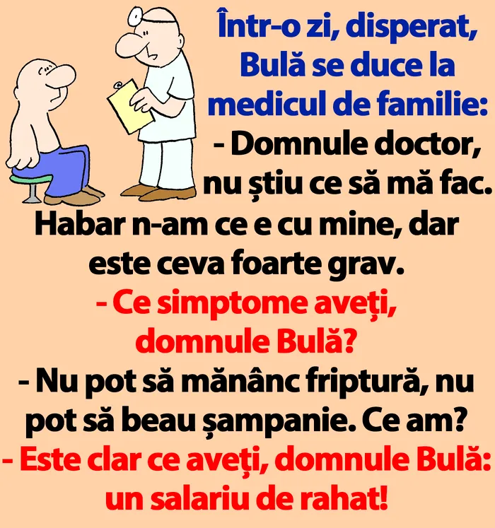 „Într-o zi, disperat, Bulă se duce la medicul de familie: