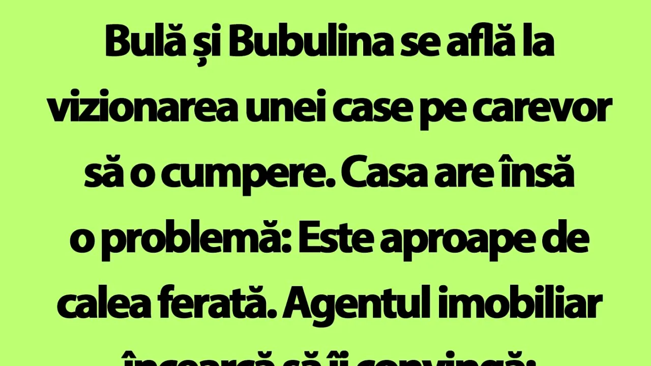 Bulă și Bubulina se află la vizionarea unei case pe care vor să o cumpere. Casa are însă o problemă: Este aproape de calea ferată. Agentul imobiliar încearcă să îi convingă: