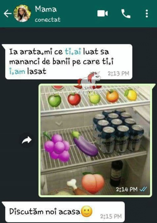 Mama îl ceartă pe Bulă pe WhatsApp: „Ia arată-mi ce ți-ai luat să mănânci de banii pe care ți i-am lăsat!”