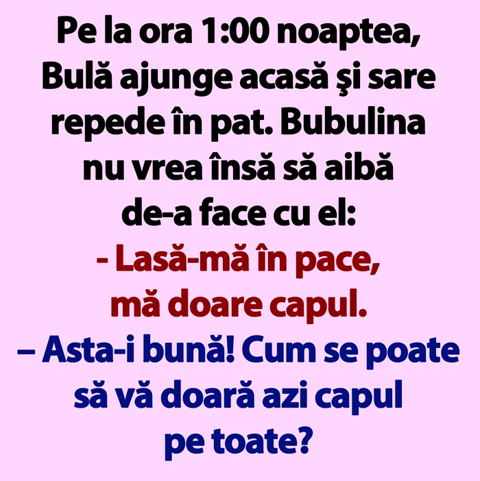 – Asta-i bună! Cum se poate să vă doară azi capul pe toate?