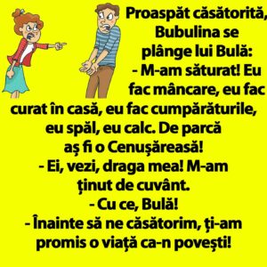 – Înainte să ne căsătorim, ți-am promis o viață ca-n povești!