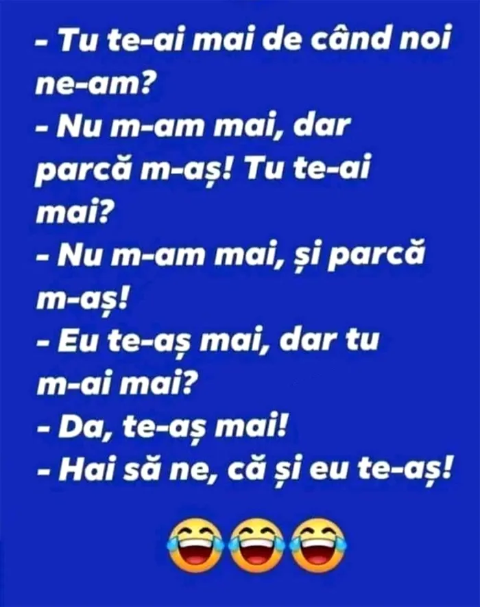– Nu m-am mai, dar parcă m-aș! Tu te-ai mai ?