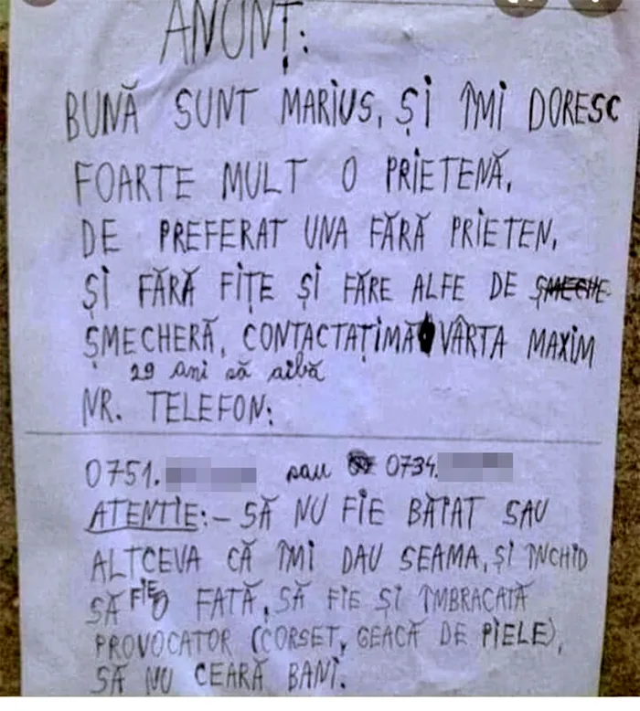Bună sunt Marius și îmi doresc foarte mult o prietenă, de preferat una fără prieten și fără fițe și fără „alfe” de șmecheră.