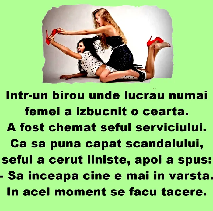 Bancul de marți | Într-un birou unde lucrau numai femei a izbucnit o ceartă