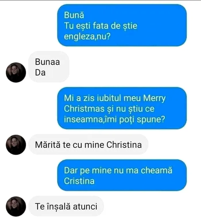 – Mi-a zis iubitul meu „Merry Christmas” și nu știu ce înseamnă, îmi poți spune?