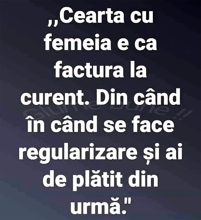 „Cearta cu femeia este ca factura la curent. Din când în când se face regularizare și ai de plătit din urmă”.