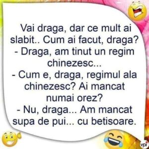 – Cum e, dragă, regimul ăla chinezesc? Ai mâncat numai orez?