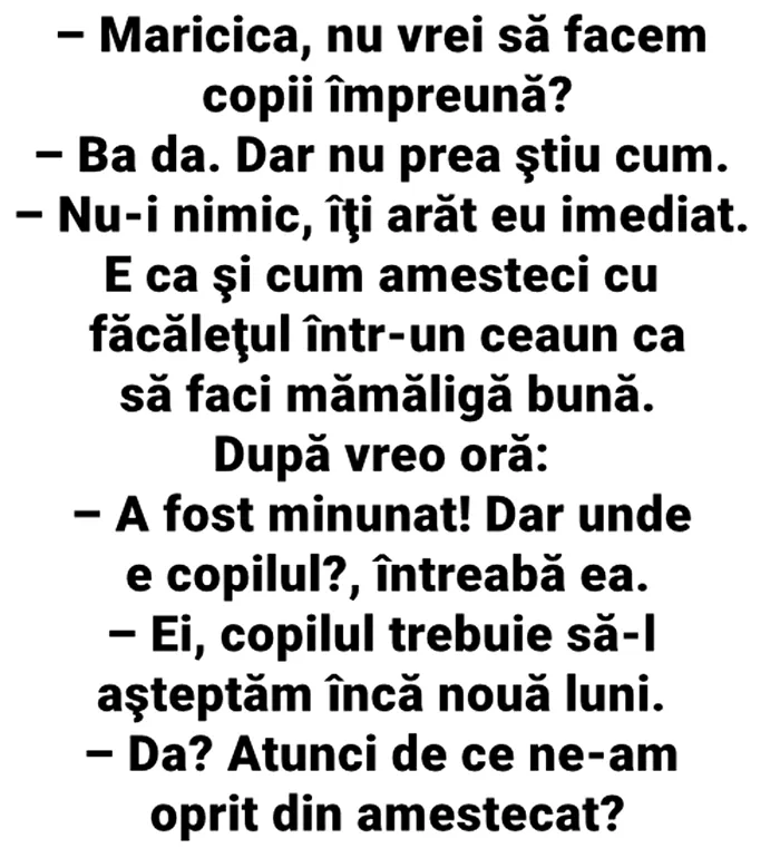 -Da? Atunci de ce ne-am oprit din amestecat?