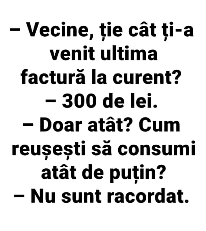 – Vecine, ție cât ți-a venit ultima factură la curent?