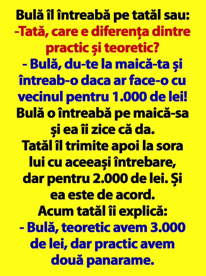 – Bulă, du-te la maică-ta și întreab-o daca ar face-o cu vecinul pentru 1.000 de lei!