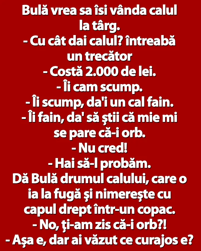 – Îi scump, da’i un cal fain.