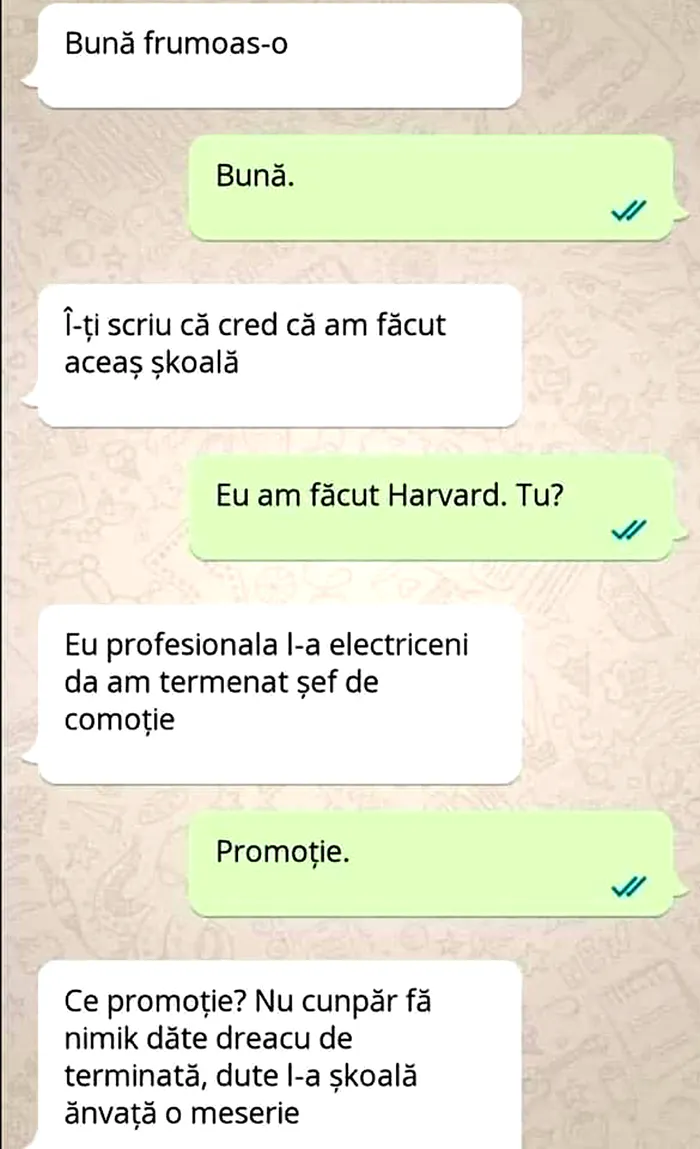 -Ce promoție? Nu cunpăr fă nimik dăte dracu de terminată, dute l-a șkoală ânvață o meserie!