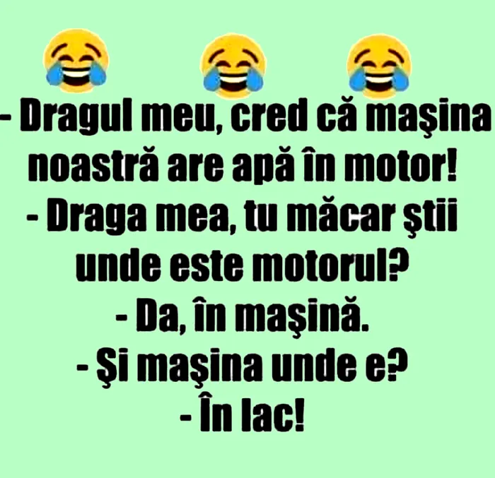 – Dragul meu, cred că mașina noastră are apă la motor!