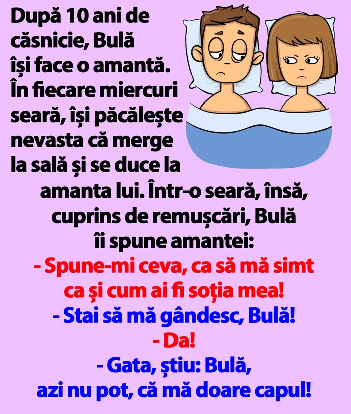 – Gata, știu: Bulă, azi nu pot, că mă doare capul!