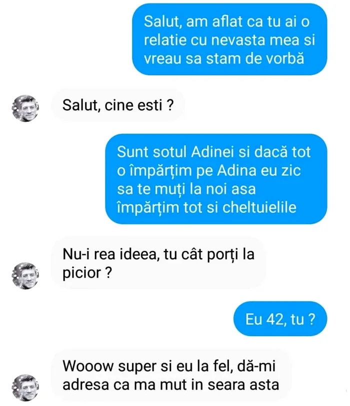 –Sunt soțul Adinei șia dacă tot o împărțim pe Adina, eu zic să te muți la noi, așa împărțim tot și cheltuielile