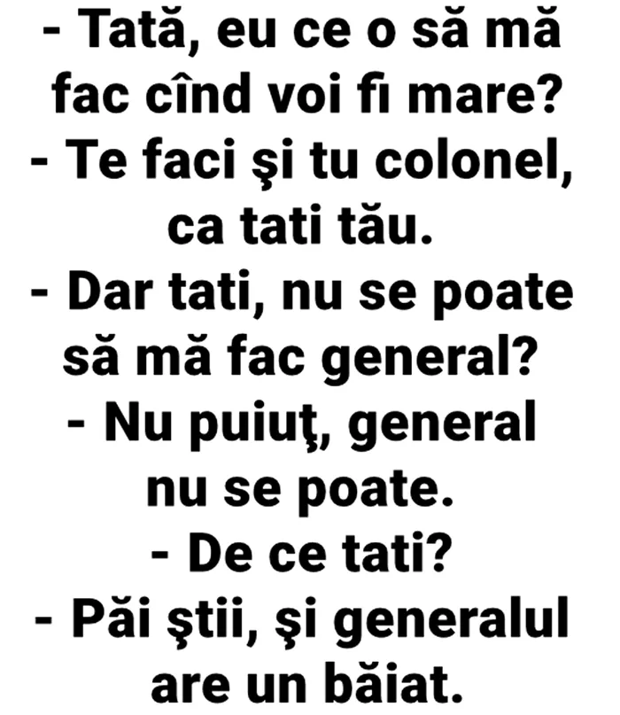 – Păi știi, și generalul are un băiat.