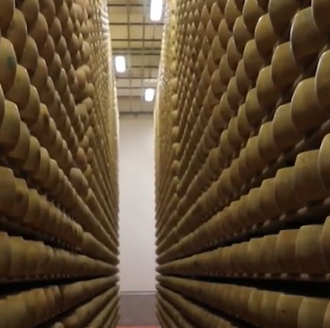 „Valoarea totală a brânzei pe care o avem aici este estimată la 120-130 de milioane de euro”, explică Roberto Frignani, directorul băncii CREDEM.