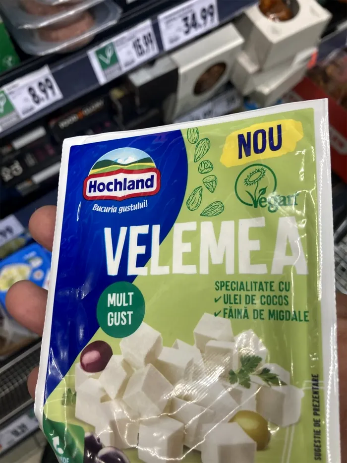 Dacă ești fan declarat al lactatelor și, totuși, preferi să le consumi pe cele de origine vegetală, experții în nutriție au un sfat pentru tine legat de brânzeturi. Specialitatea Velemea de la Hochland costă 9.49 lei (150g), adică mai mult decât telemeaua Hochland „normală”. Potrivit etichetei, specialitatea de post este făcută pe bază de ulei de cocos și făină de migdale.