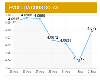 De asemenea, dolarul s-a apreciat cu 3,95 bani în raport cu leul, ajungând la 4,0790 lei, în creştere cu 0,98% faţă de cotaţia anterioară, de 4,0395 lei/dolar.
