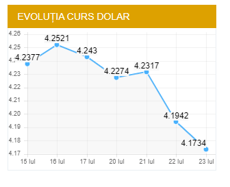 Leul s-a apreciat din nou în fața monedei americane cu 0.0208 de bani fata de sedinta anterioara, cand un dolar valora 4,1942 lei.