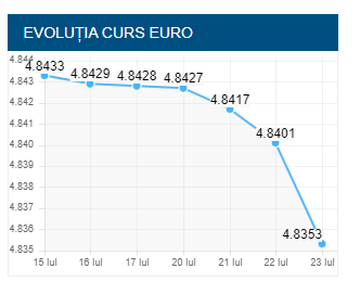 Moneda națională a continuat să se aprecieze în raport cu moneda Zonei Euro cu 0.48 de bani, comparativ sedinta precedenta, cand un euro valora 4,8401 lei.