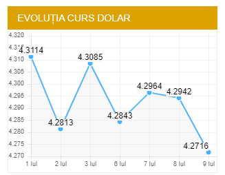 Joi, un dolar are valoarea de 4,2716 lei. Leul s-a apreciat din nou semnificativ în raport cu moneda americană. Miercuri, un dolar era cotat la 4,2942 lei.