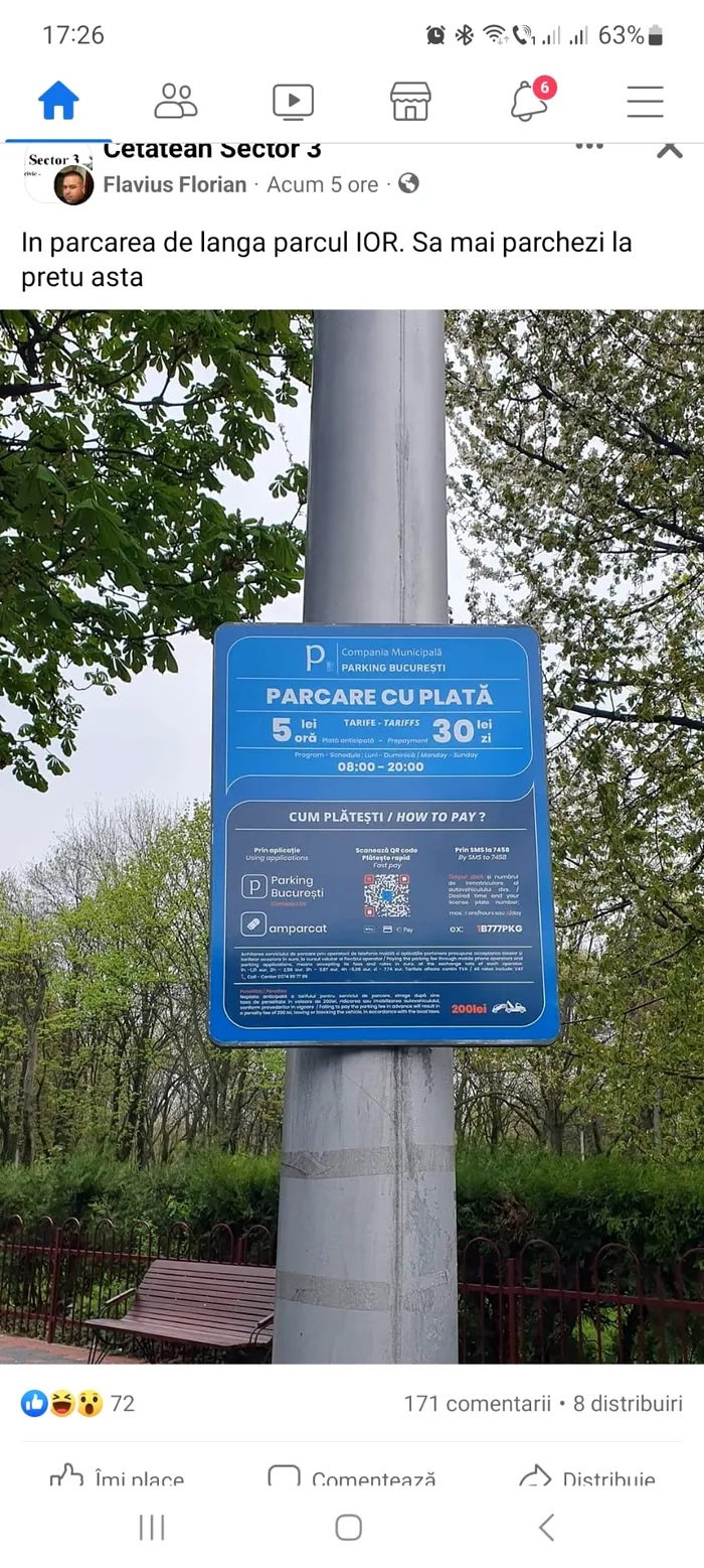 Un cetățean a fotografiat panourile, alături de un comentariu: „În parcarea de lângă Parcul IOR. Să mai parchezi la prețul ăsta”