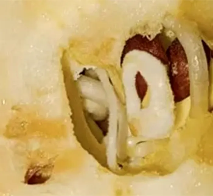 „Așadar, aceste semințe de măr Pink Lady au încolțit în interiorul mărului”, a scris ea duminică, potrivit nypost.com. Fotografia arată miezul unui măr pe jumătate mâncat cu o tulpină lungă albă care iese dintr-una dintre semințe. La prima vedere, ar putea fi ușor confundat cu un vierme, dar la o inspecție mai atentă, pare a fi un răsad.