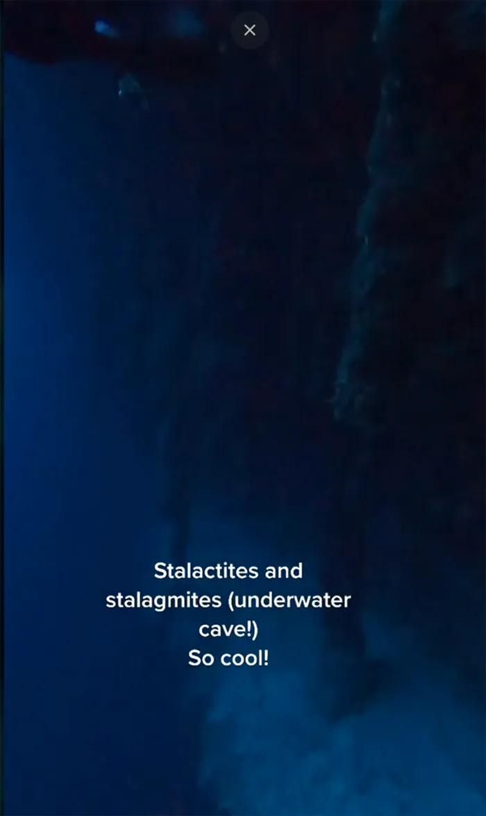 În videoclip, tânăra a făcut scufundări în „Marea Gaură Albastră”, ajungând până la o adâncime de aproximativ 40 de metri. În imagini ea surprinde stalactite de mari dimensiuni, dar și niște exemple gigantice de viață marină care pot reprezenta o amenințare serioasă pentru scafandri, arată LadBible.