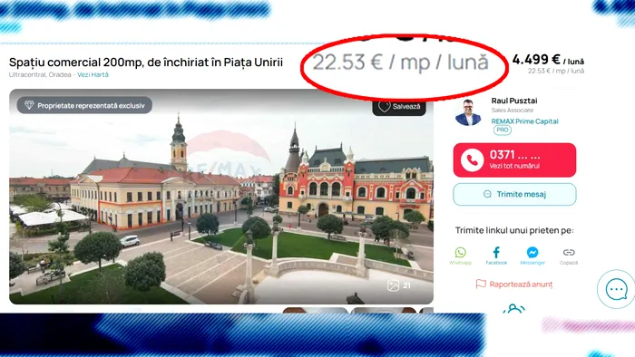 La un preț de 5 euro pe metru pătrat, chiria este una dintre cele mai ieftine din Oradea, pentru un spațiu comercial de acest tip.