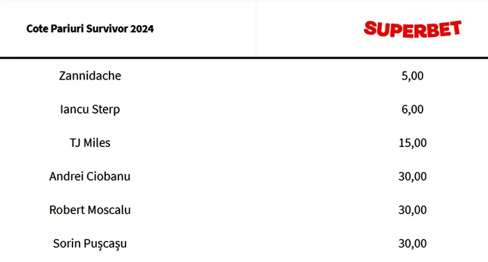 Deși nu este un meci de fotbal ori vreo competiție internațională, Survivor All Stars este cotată la casele de pariuri. Mai exact, casa de pariuri Superbet a făcut publice cotele pentru câștigarea Survivor All Stars, după 18 săptămâni de competiție acerbă.