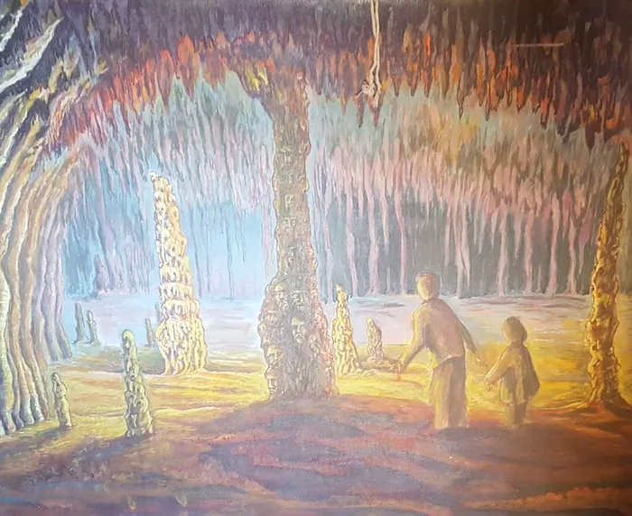 Urmează un alt tablou: „E pădurea amputată. El îi spunea pădurea însângerată. Și parcă a avut o premoniție, că s-au tăiat pădurile”. În alt tablou era un labirint și în mijloc este Iisus răstignit pe cruce. Îmi zicea : «Uite cum e viața, ca un labirint, dacă ai credință ieși din labirint»