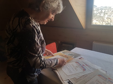 „Îi plăcea să picteze în liniște și singur. Era talentat”, spune doamna Babeș, în timp ce arată gravurile.