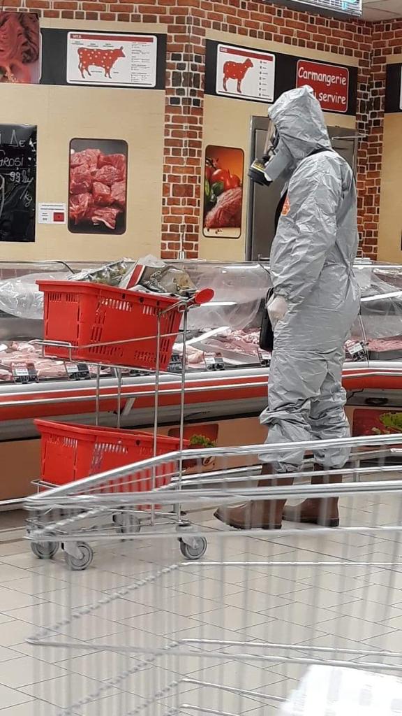 Prima pagină » Diverse » EXCLUSIV. Cum a ieșit azi un român la cumpărături. Este costumat în echipament complet de protecție pentru un „atac biologic”/ FOTO, VIDEO