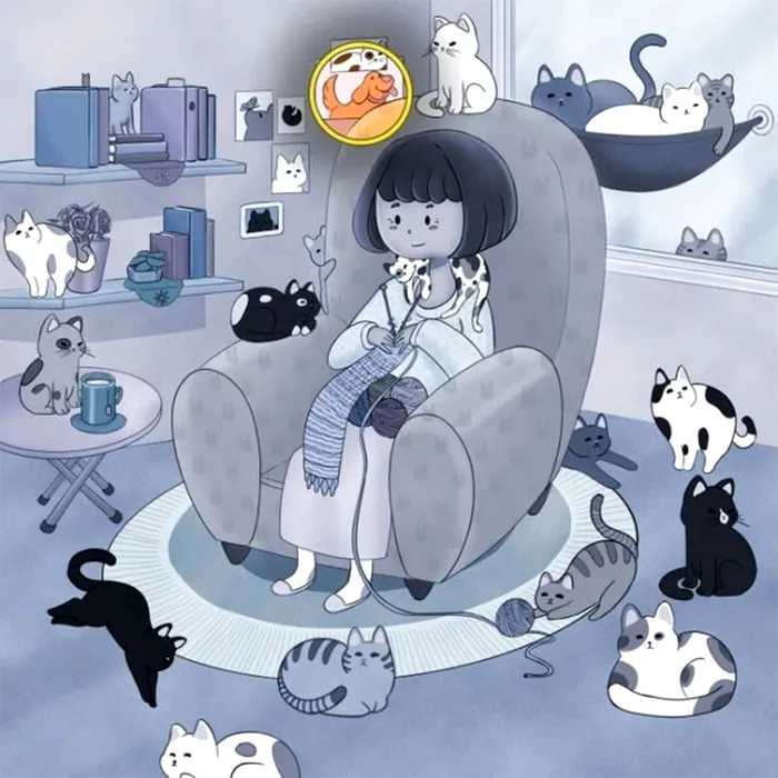 În această iluzie optică, provocarea este să găsești câinele care se ascunde cu abilitate printre pisici. O femeie stă liniștită pe scaun și țese un pulover. Este înconjurată de pisicile ei de companie. Dar există un câine ascuns în această cameră. Tu ai văzut câinele? Dacă nu, te ajutăm noi!